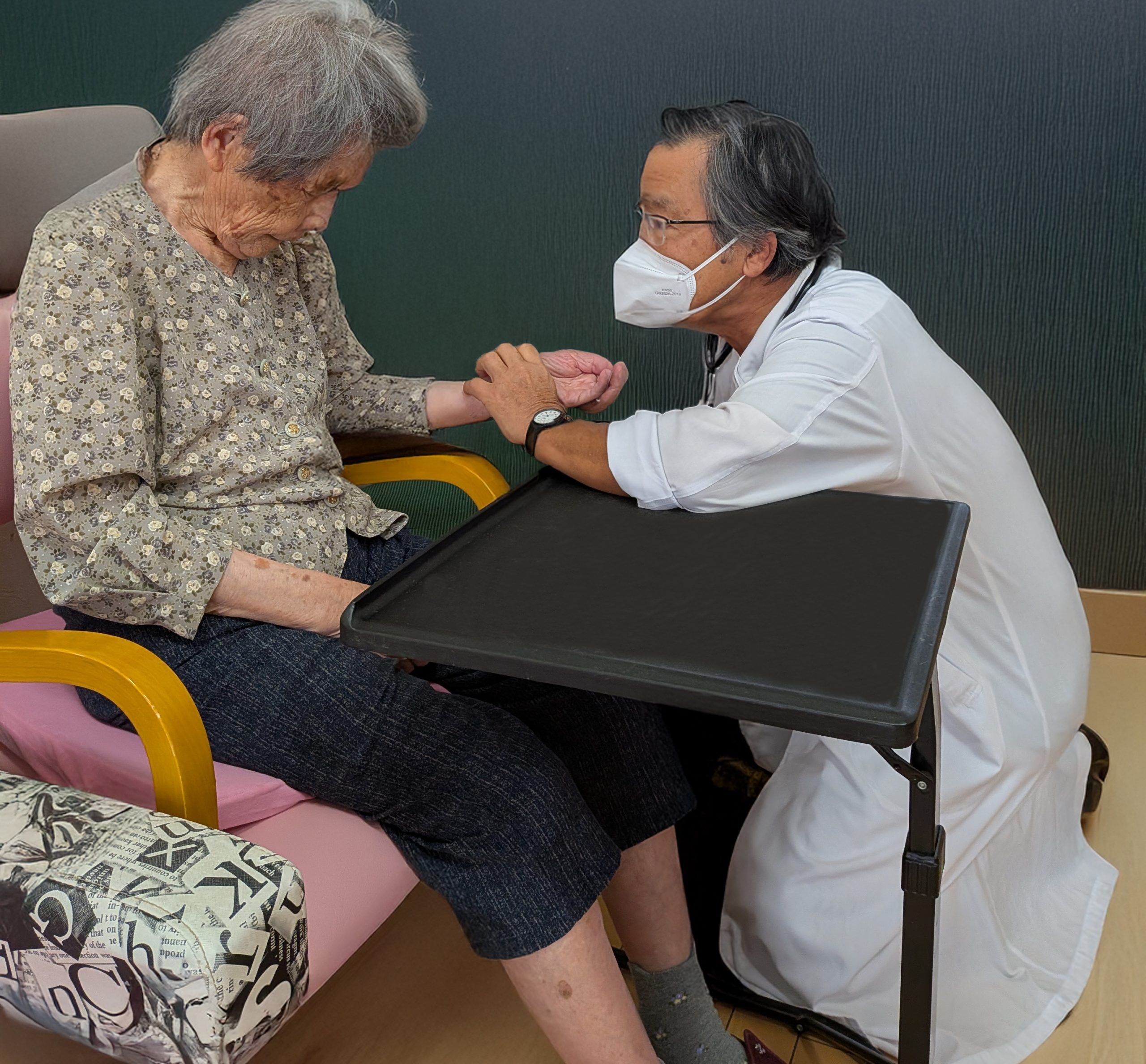 入居者様の日々の健康相談や、体調不良時の受診ができ、永井病院の医師・看護師等が月2回訪問診療を行なってくれています。